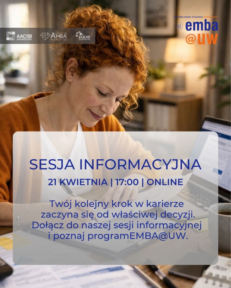 W październiku 2026 r. rozpoczyna się kolejna, już 34. edycja naszych podyplomowych studiów EMBA@UW, czyli Executive MBA na Uniwersytecie Warszawskim.